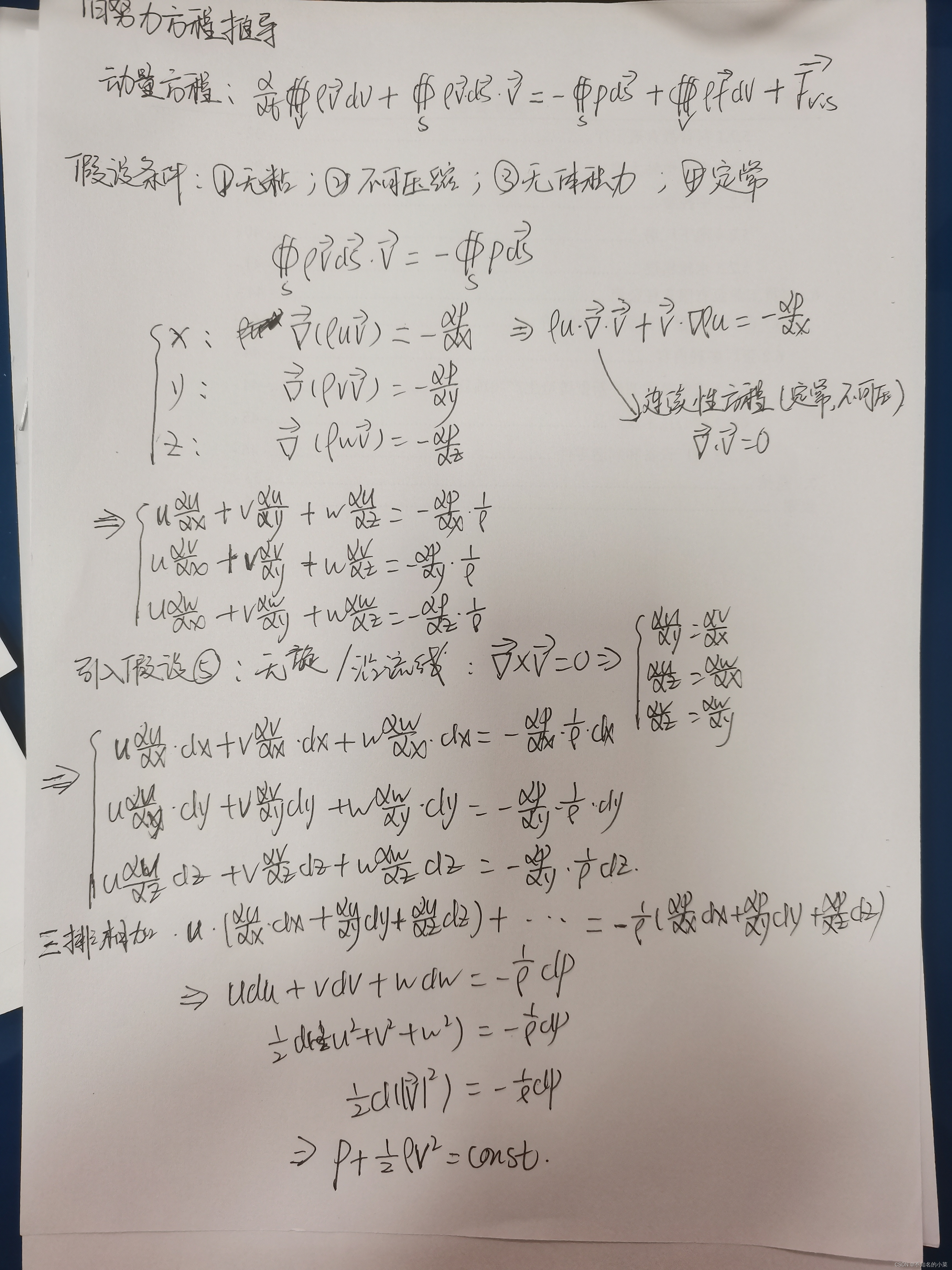 伯努利方程应该可以说是流体力学最著名、常用到的公式,其推导是从基本控制方程中得到。