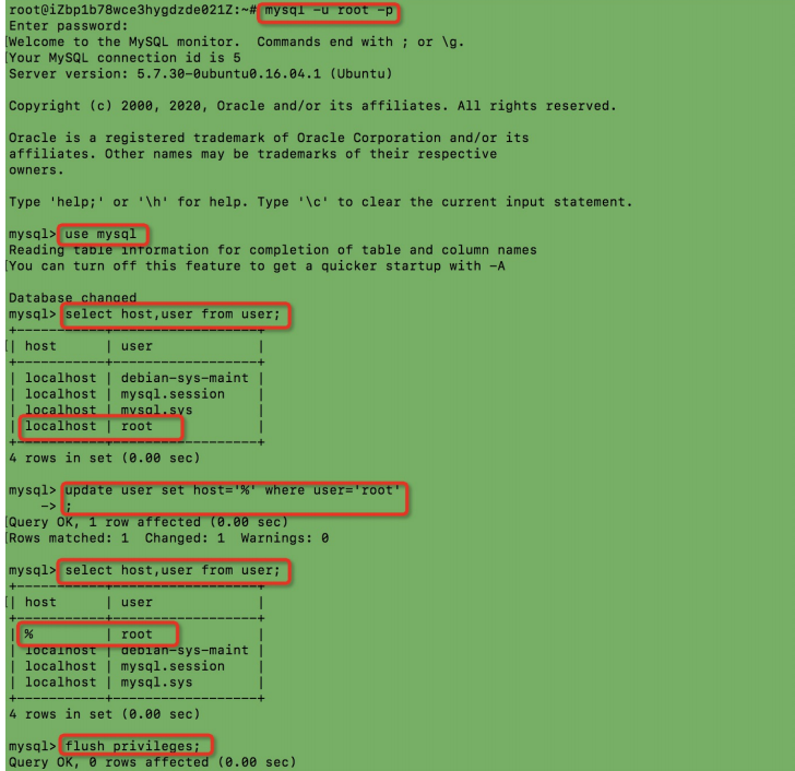 4、mysql>flush privileges;