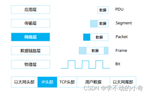 被传递给网络层,网络层添加IP报头得到的PDU被称为Packet(数据包);数据包被