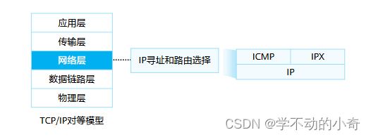 • 网 络 层 经 常 被 称 为 IP 层 。 但 网 络 层 协 议 并 不 只 是 IP 协 议 , 还 包 括 ICMP ( Internet Control Message Protocol)协议、IPX(Internet Packet Exchange)协议等。