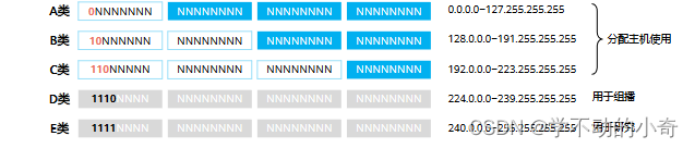 号码字段的前几个比特就可以判断IP地址属于哪一类,这是区分各类地址最简单的方