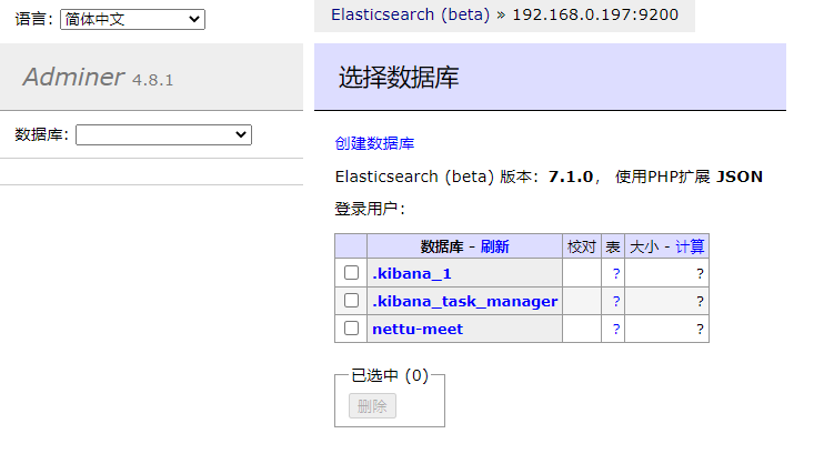 Nettu Meet 还用到了 Elasticsearch ,正好又是开箱即用的,所以也一并看看,但是 Adminer默认不支持访问没有密码的数据库