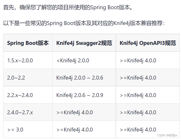 版本参考网址:Knife4j版本参考 | Knife4j