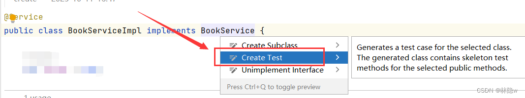 (2)创建单元测试用例 create test