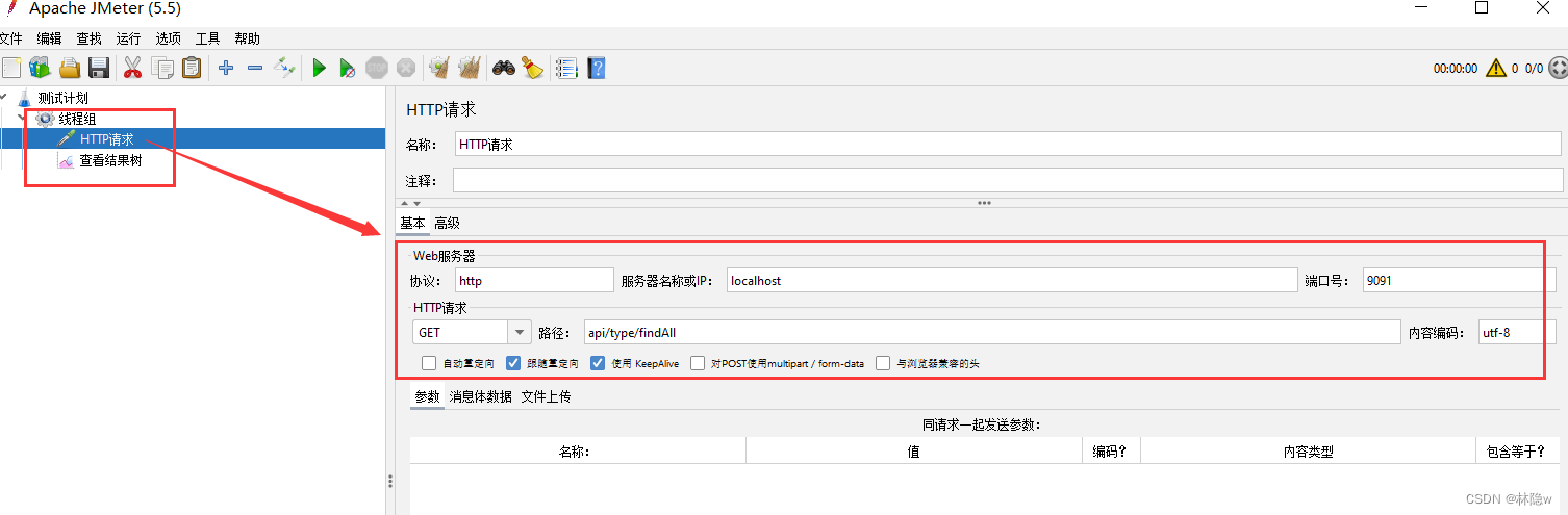 添加线程组和线程数 ➡ 添加取样器和监听器