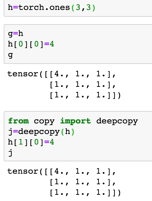 此外,torch里面向量或是矩阵的赋值是指向同一内存的,这种策略不同于 Matlab。如果想不想引用,可以用 clone() 进行 深拷贝