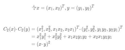 令核函数 K(x, y) = (<x, y>)^2.