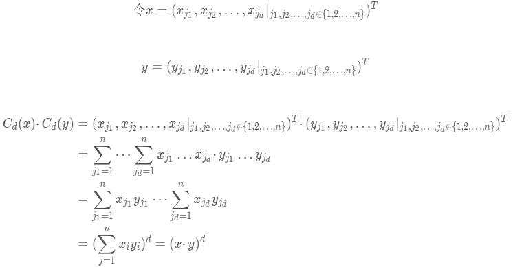 可以看出该核函数--二次项多项式核函数,K(x1,x2)=(x1*x1,x2*x2,x1*x2,x2*x1)是ok的因为内积相等。多次项多项式核函数同理