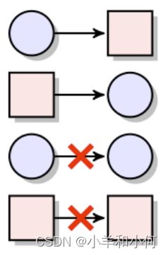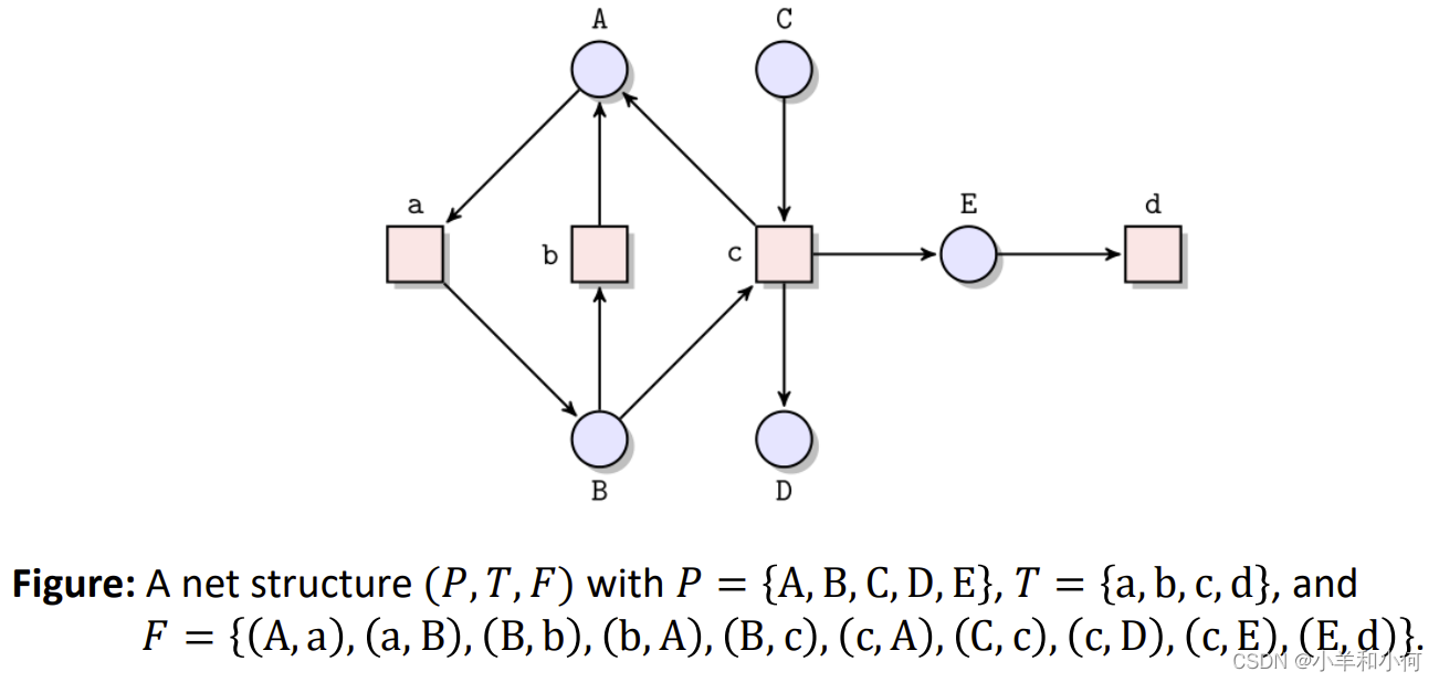 - 一个arc把一个palce和一个transition联系起来,或者把一个transition和一个palce联系起来;因此,Petri net是一个有向二边形图。
