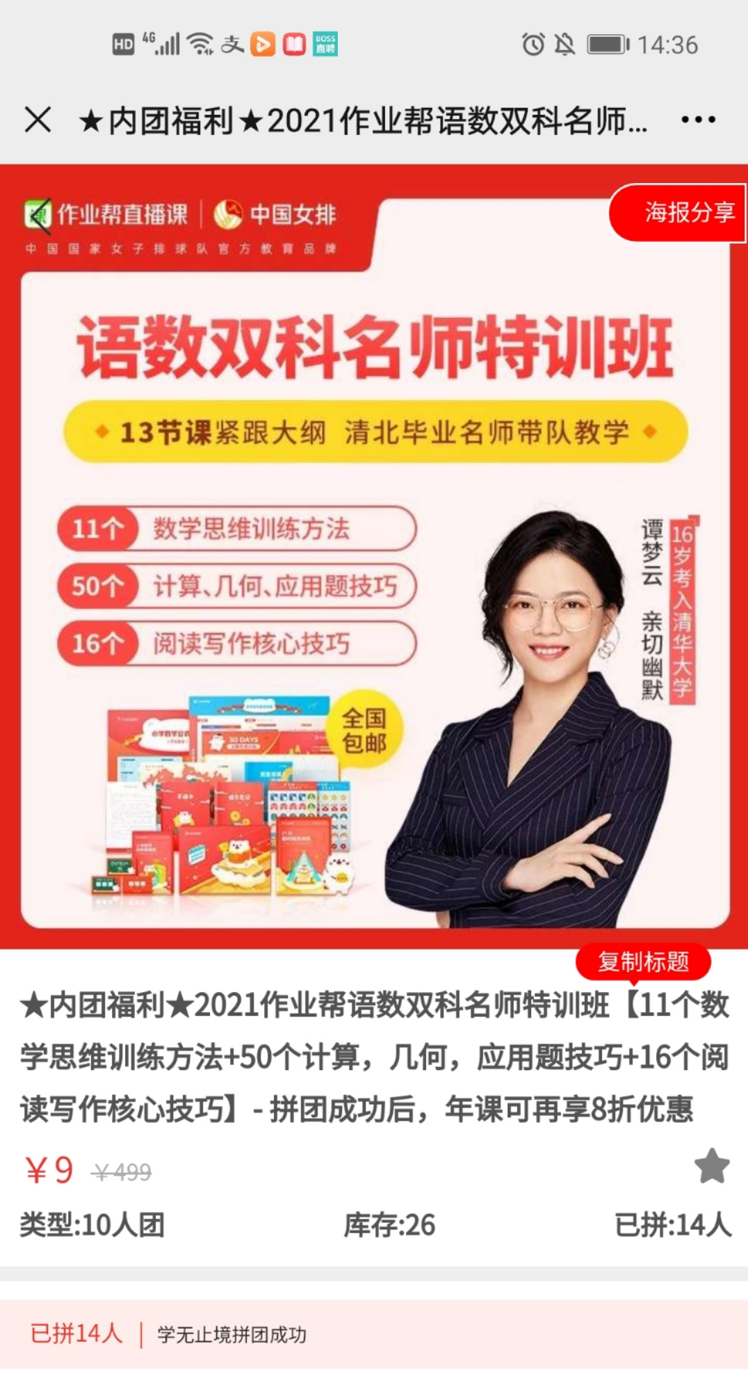 拼团的一个显著特点是通过分享进行老带新,更多利用社交关系促进订单转化。这个环节要考虑的是,分享出来的这个拼团活动状态不同,用户看到的页面也不同。
