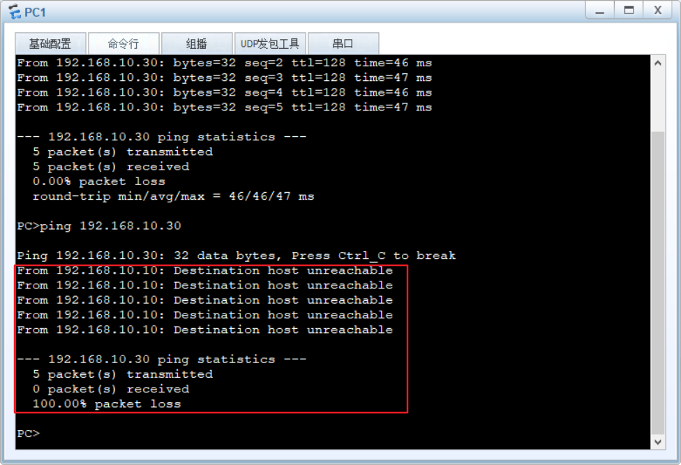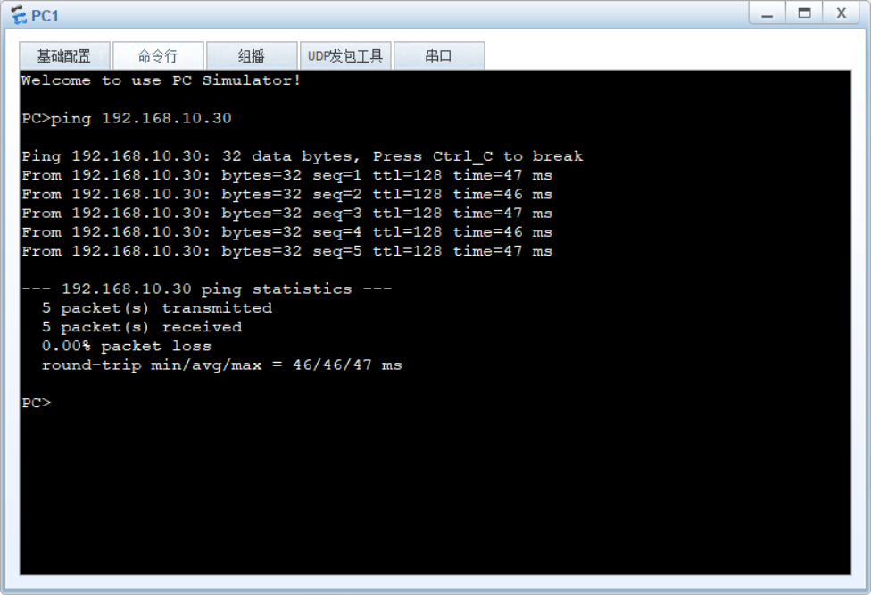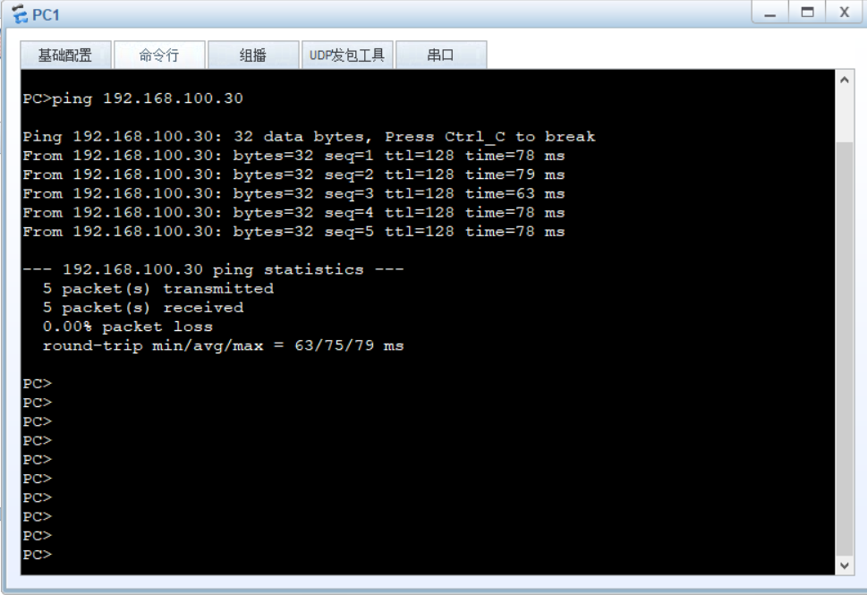 先测试PC1与PC3的连通性,是可ping通的