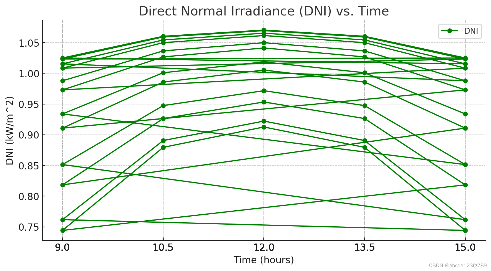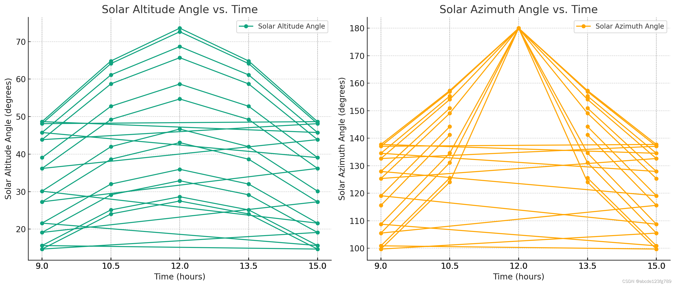 现计划在中心位于东经 98.5 ∘,北纬 39.4 ∘,海拔 3000 m,半径 350 m 的圆形区域内建设 一个圆形定日镜场(图 2)。以圆形区域中心为原点,正东方向为 𝑥 轴正向,正北方向为 𝑦 轴 正向,垂直于地面向上方向为 z 轴正向建立坐标系,称为镜场坐标系。 规划的吸收塔高度为 80 m,集热器采用高 8 m、直径 7 m 的圆柱形外表受光式集热器。吸 收塔周围 100 m 范围内不安装定日镜,留出空地建造厂房,用于安装发电、储能、控制等设备。 定日镜的形状为平面矩形,其上下两条边始终平行于地面,这两条边之间的距离称为镜面高度, 镜面左右两条边之间的距离称为镜面宽度,通常镜面宽度不小于镜面高度。镜面边长在 2 m 至 8 m 之间,安装高度在 2 m 至 6 m 之间,安装高度必须保证镜面在绕水平转轴旋转时不会触及 地面。由于维护及清洗车辆行驶的需要,要求相邻定日镜底座中心之间的距离比镜面宽度多 5 m 以上。 为简化计算,本问题中所有“年均”指标的计算时点均为当地时间每月 21 日 9:00、10:30、 12:00、13:30、15:00。