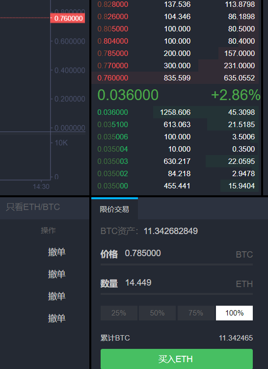 这个地方有一个小小的关于用户体验的建议。币安这个地方如果说点击卖单的第三个挂单,那么他会在买入区显示前三个卖单的总量,而且这个体验感非常好,这也是我一直在币安的一个原因,方便追涨。