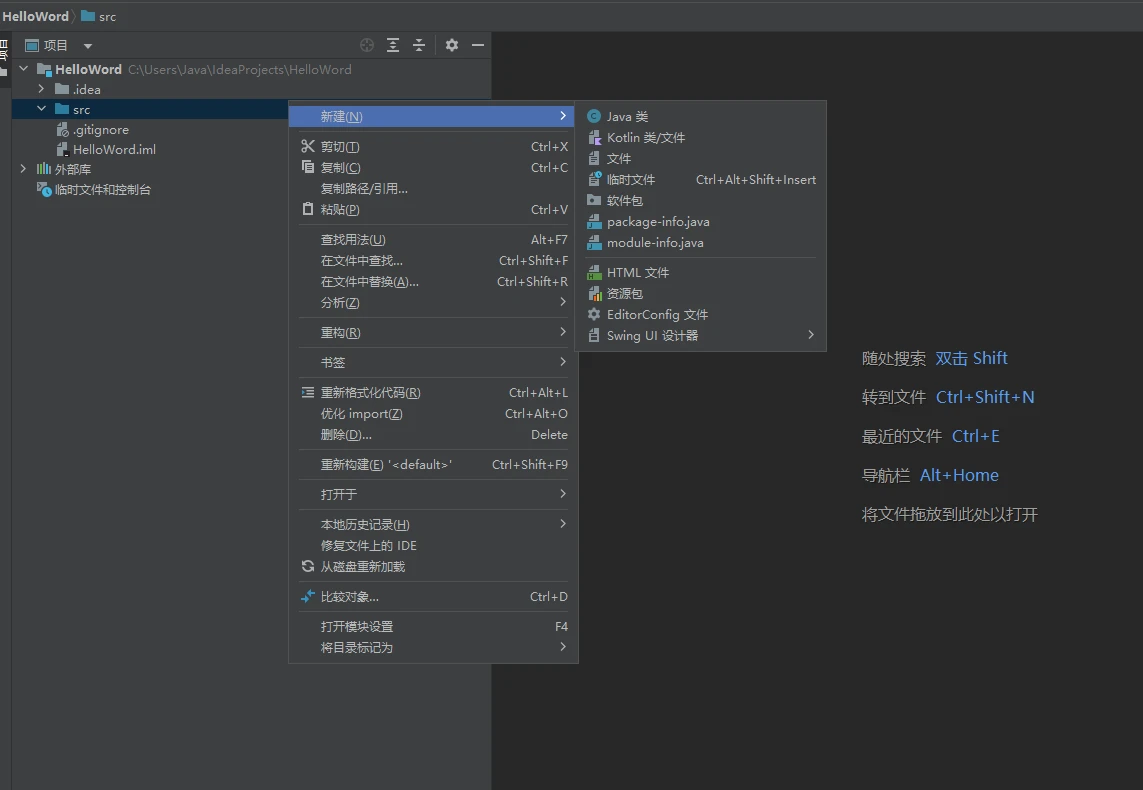 创建一个java文件