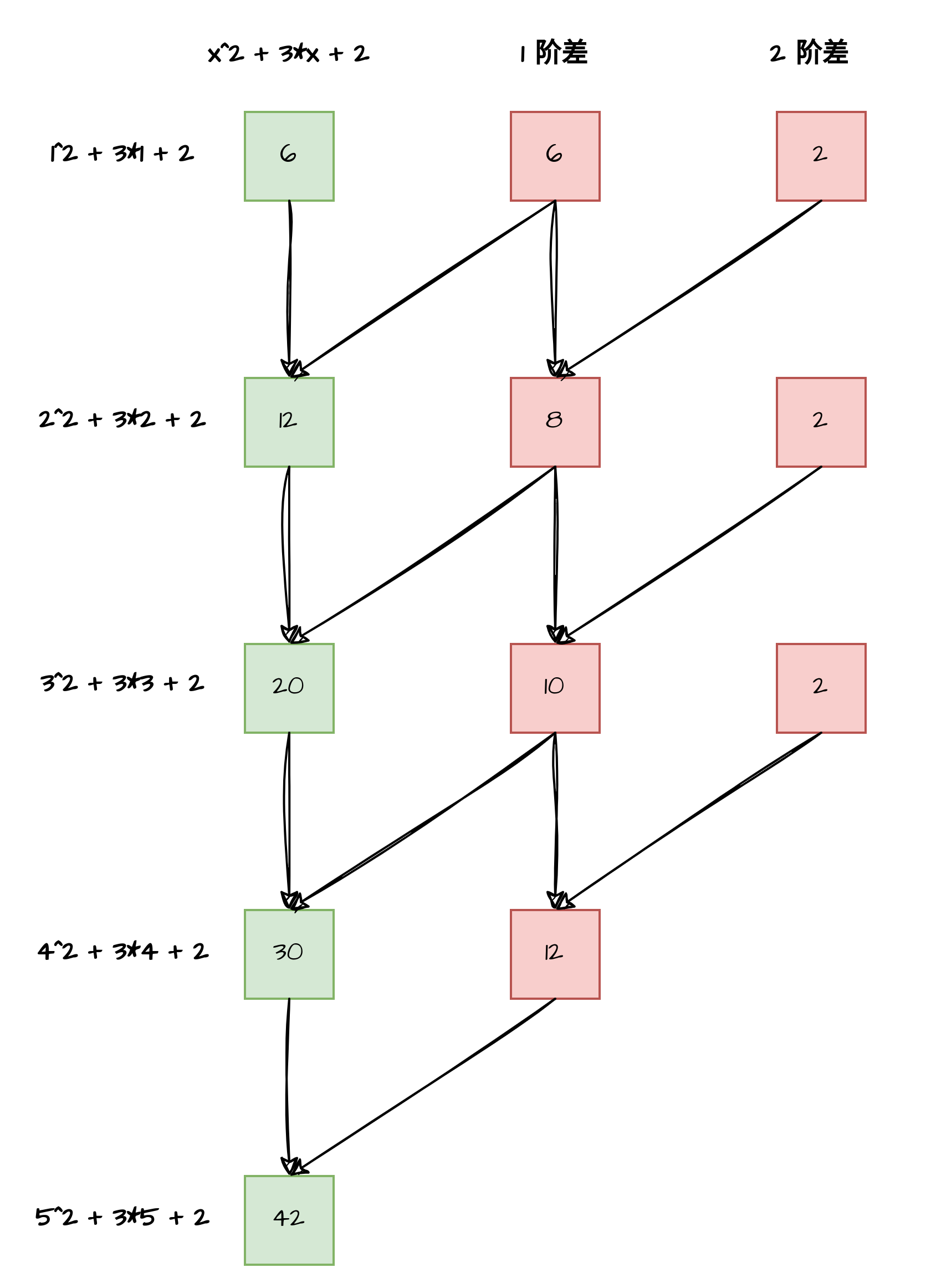 三次函数有三阶差,其三阶差是6,而x^3的三阶导数也是6,似乎有某种相通之处。