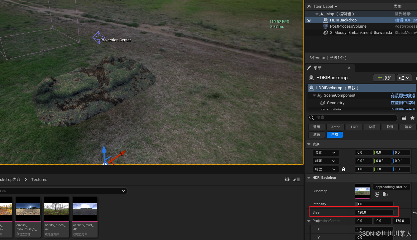 推测和lumen距离场有关,HDRI背景的尺寸可以根据实际效果修改。