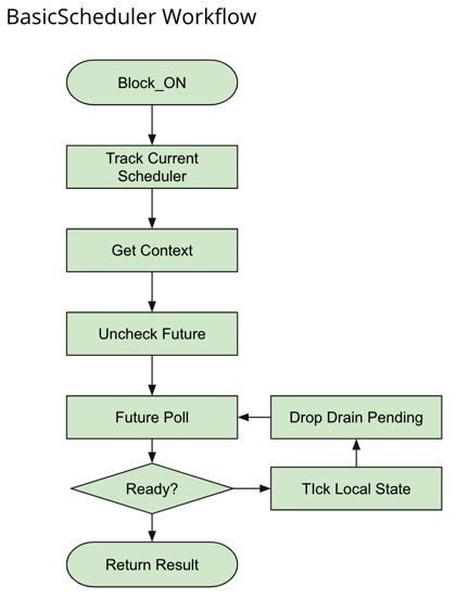 Thread_Scheduler 和 Basic_Scheduler 的区别在于, Thread 是多线程多任务模式,Basic 是单线程多任务模式。Threaded 用和 CPU 核数一样的线程数,针对每个任务用一个线程来执行。block_on 和 spawn 都是这样。所以 Thread 的流程较为简单,没有 Basic 复杂。