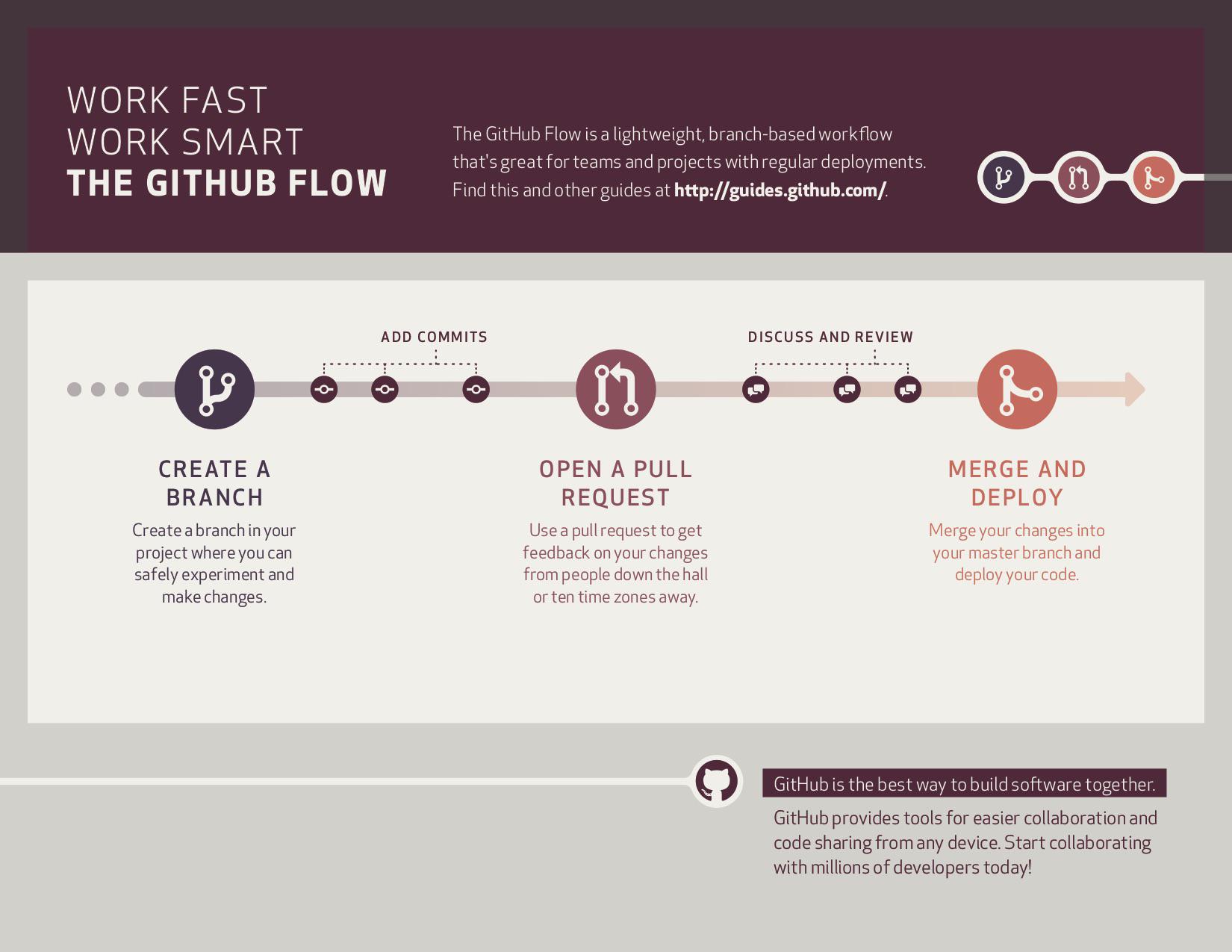 Github提供了一个简化的工作流程,称为GitHub flow,小型项目可以凑合用着,但对于大型、多版本、多人协作、高发布频次的项目来说,完全不够用。