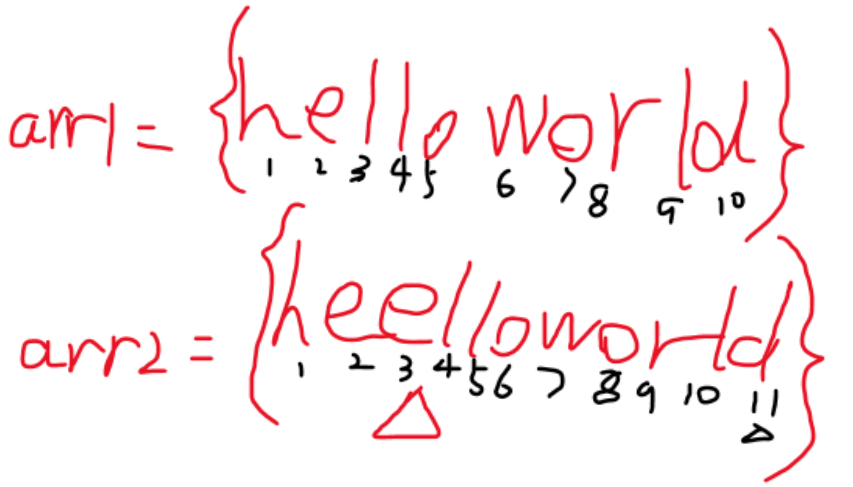 关键2:2份文档的头尾内容相同,我们可以理解为,2个数组,他们的长度差值为1,第0个元素和第.length-1个元素对应相同,也就是说 arr1.length-arr2.length取绝对值,结果为1, arr1[0] == arr2[0] 并且 arr1[arr1.length-1] == arr[arr2.length-1]