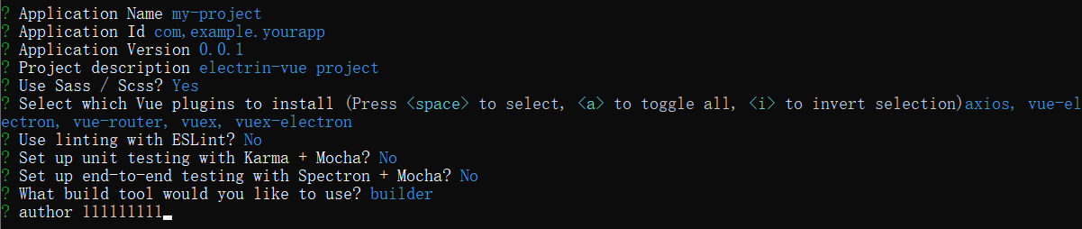 1.打开要搭建的目录,cmd打开控制台后输入:vue init simulatedgreg/electron-vue my-project