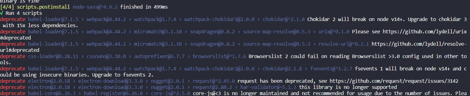 5.下载依赖完成后会有一个node_modules 有就证明成功了,(温馨提示:使用cnpm会丢包个人建议使用npm,为什么我要用因为我头铁....哈哈哈哈 如果产生丢包行为 删除node_modues重新cnpm install一下即可)