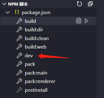 6.依赖下载成功后,控制台输入:npm run dev 或者 打开你的开发工具点击NPM脚本下点击dev也是可以的