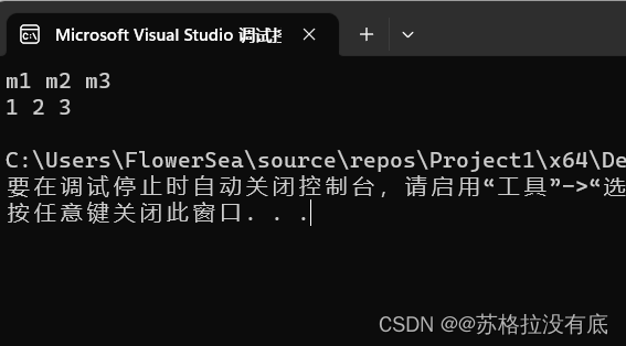 可以看到我们没有按照输入格式输入,就会得到垃圾值,正确的输入应该为m1 m2 m3
