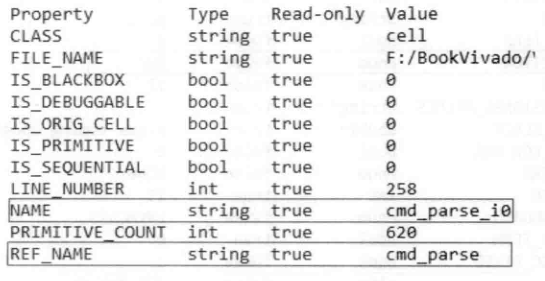 cell属性如下图所示。这里注意模块的NAME和REF_NAME的区别。其中REF_NAME对应Vrilog的module名或者VHDL的entity名,而NAME则是该模块的实例化名称。get_cells命令可以用于获取目标cell。