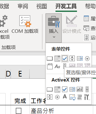 添加勾选方框:右键功能区空白处-自定义功能区-勾选开发工具-在开发工具栏选择插入-复选框