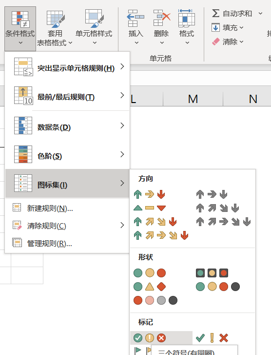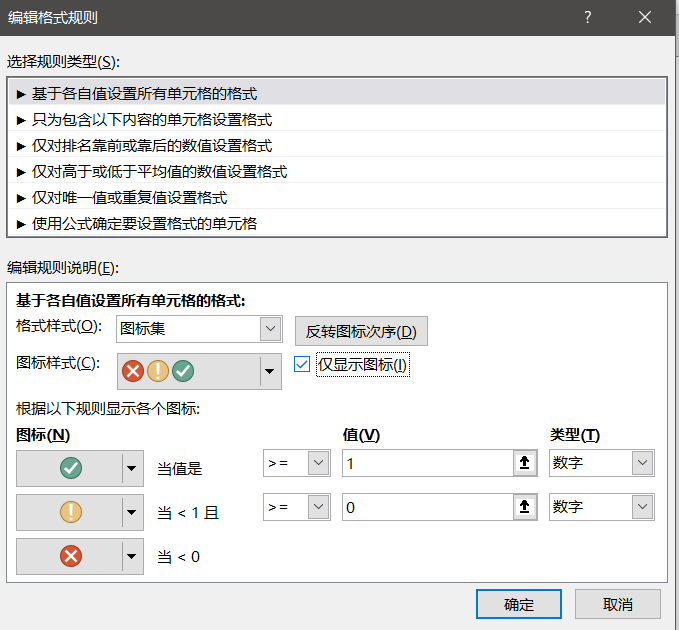 但是图标集本身是通过数值来判断套用何种符号,所以要将true和false转化为数值,采用if函数