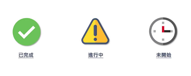 在进度栏中添加图标表示不同状态:选中进度栏-开始-条件格式选择图标集-标记