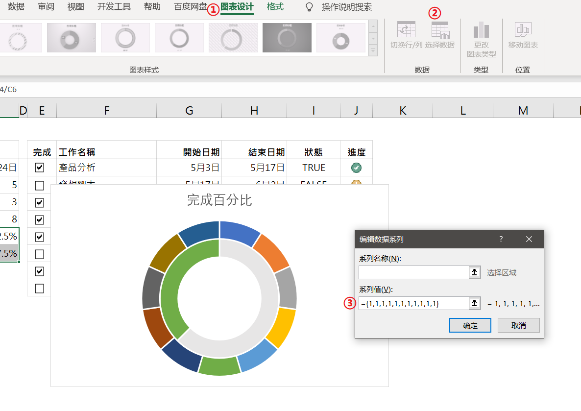 环状图的制作需要数据资料,所以先完成表格内容