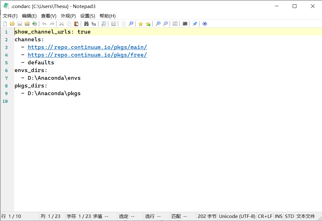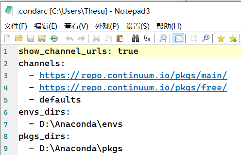 讯享网envs_dirs: - D:\Anaconda\envs pkgs_dirs: - D:\Anaconda\pkgs