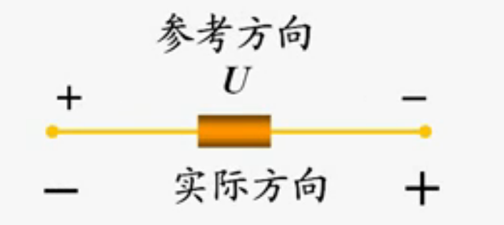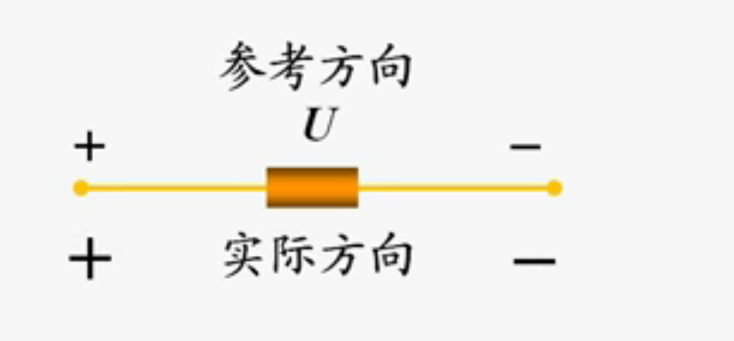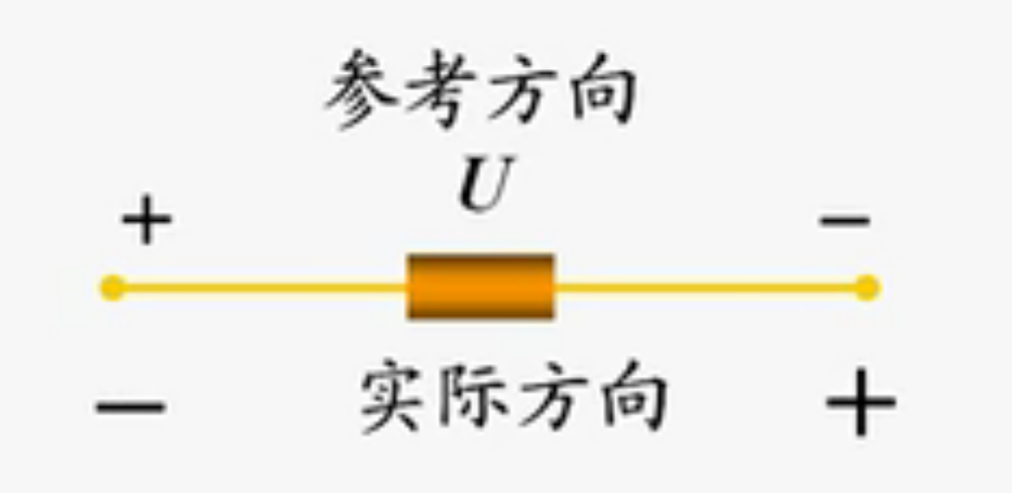 - 如果电压(降)的实际方向与参考方向是相反的话,从负极到正极。U<0。