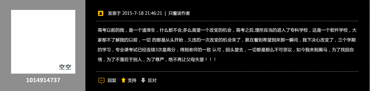 肩上背着4开大小的画板,手里提着装满颜料和画笔的工具箱,步履匆匆地奔波于各个画室之间……他们就是美术艺考生。白亚可,这个来自河南洛阳的小伙子,曾经也同样是这些艺考生中的一份子,梦想成为名副其实的画家。而如今,他与千万个代码相识,成为了一名软件开发工程师。