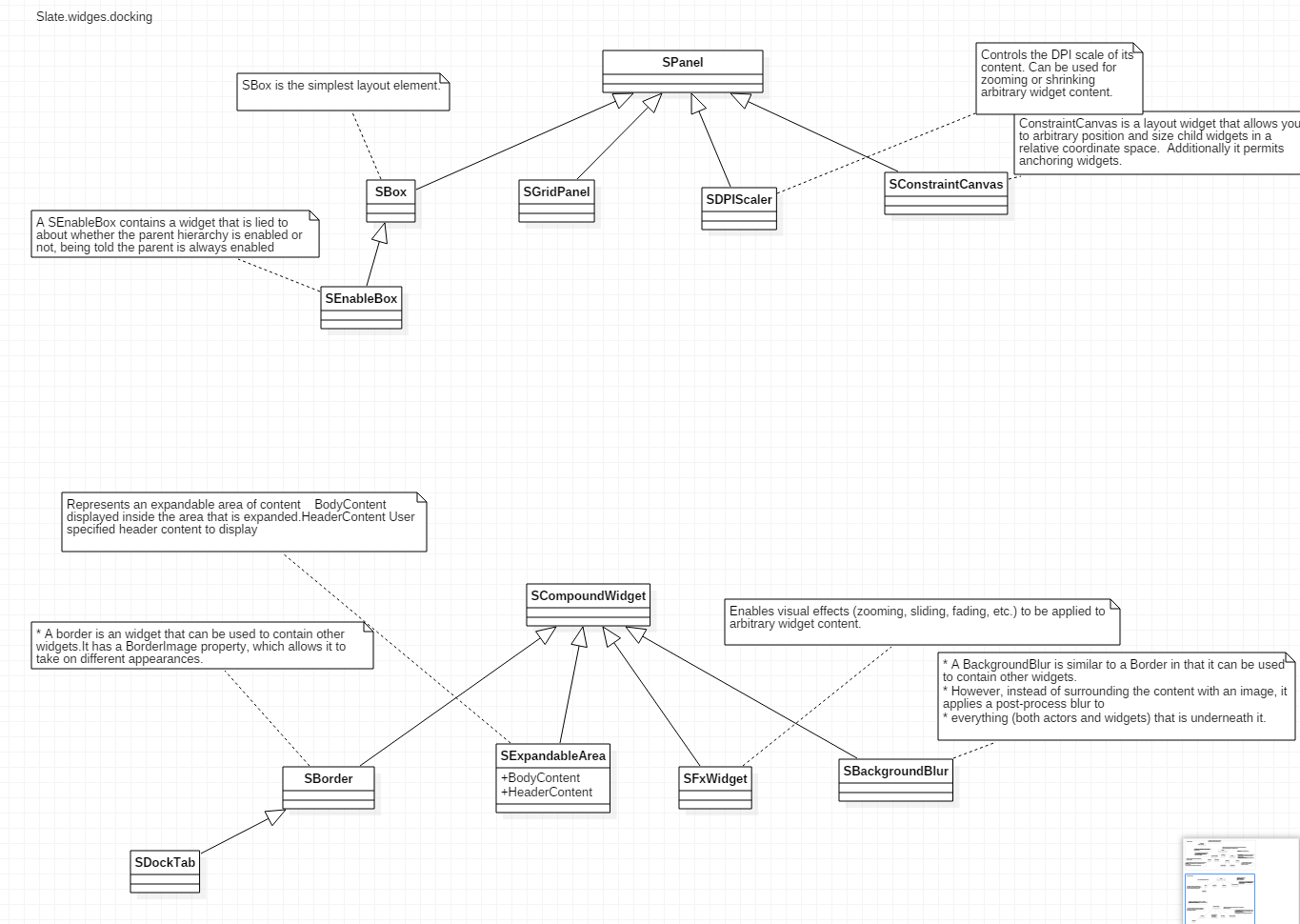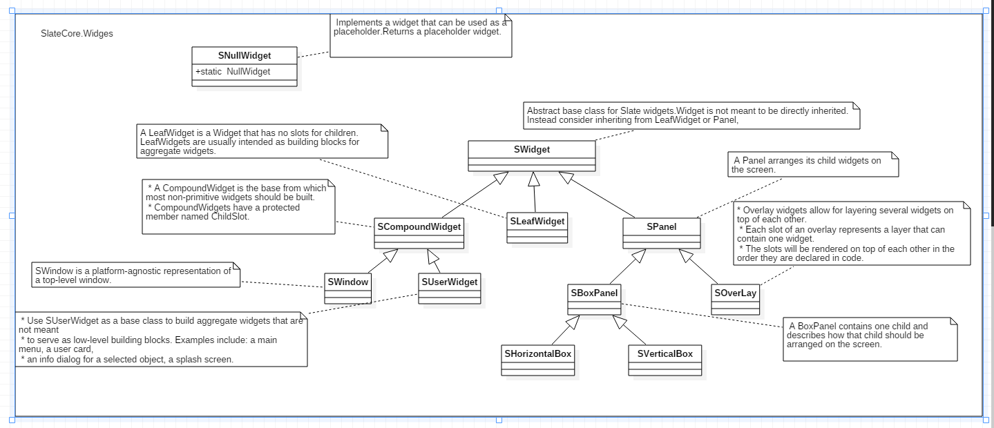3. Slate中的部分类图,其中的layout及Widge很多都继承自SWidge中的类