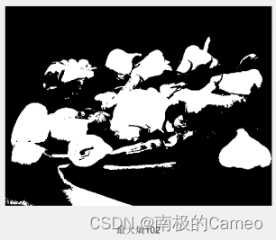 在实际应用中,选择阈值通常需要根据图像的特点和应用需求进行调整。这里,由于图像灰度分布不均匀,将中间值作为阈值,分割效果较好。