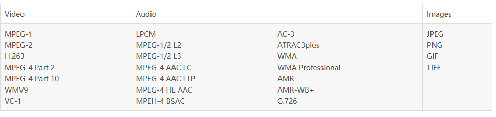 媒体管理: 媒体服务器和媒体播放器支持以下形式: