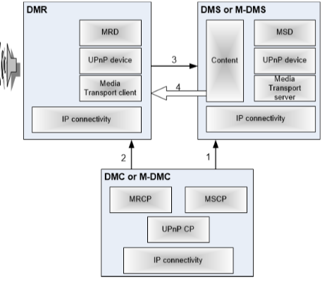 M-DMS/DMS: 媒体源,如:手机,MP3,流媒体服务器.