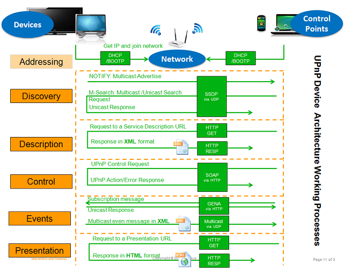 新加入的设备首先要通告控制节点。一个新的控制节点在局域网内扫描所有的设备,确实是否支持upnp。