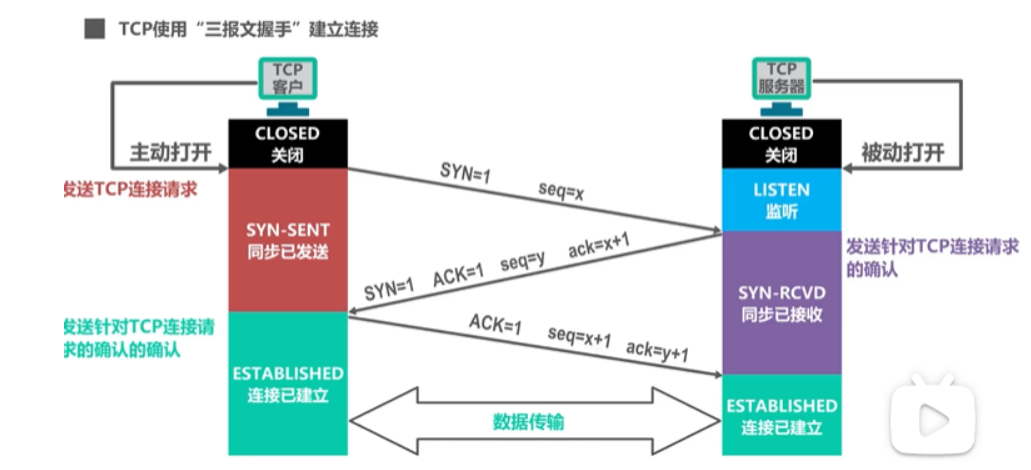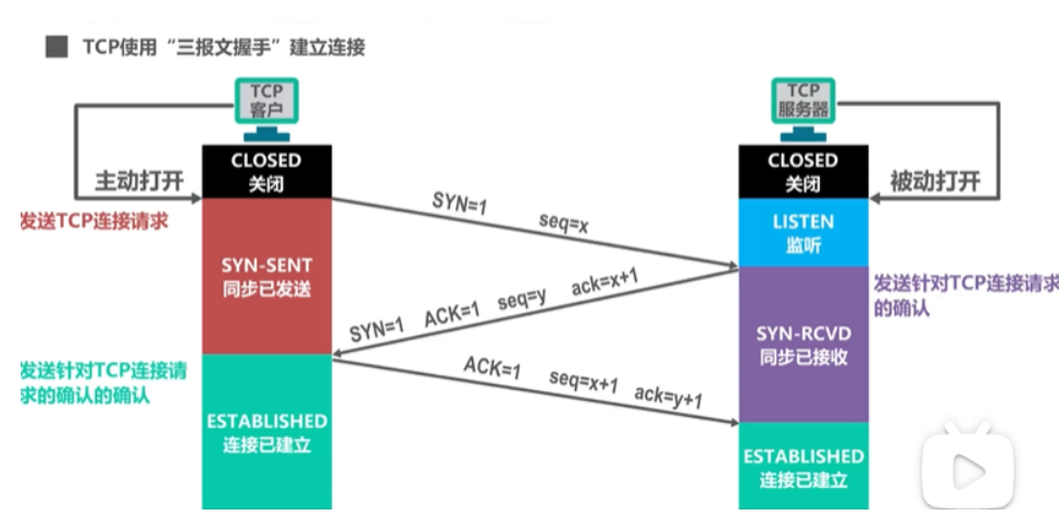 客户端接收到服务器发送的连接请求后,会再一次发送一个普通的TCP确认报文段,该报文段包括确认位ACK=1、序号为seq=x+1和对服务器发送的连接请求的序号进行确认ack=y+1