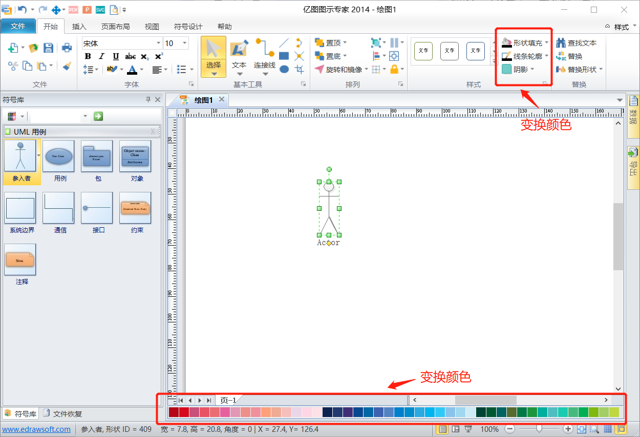 选中图案可在下方或者上方更改颜色