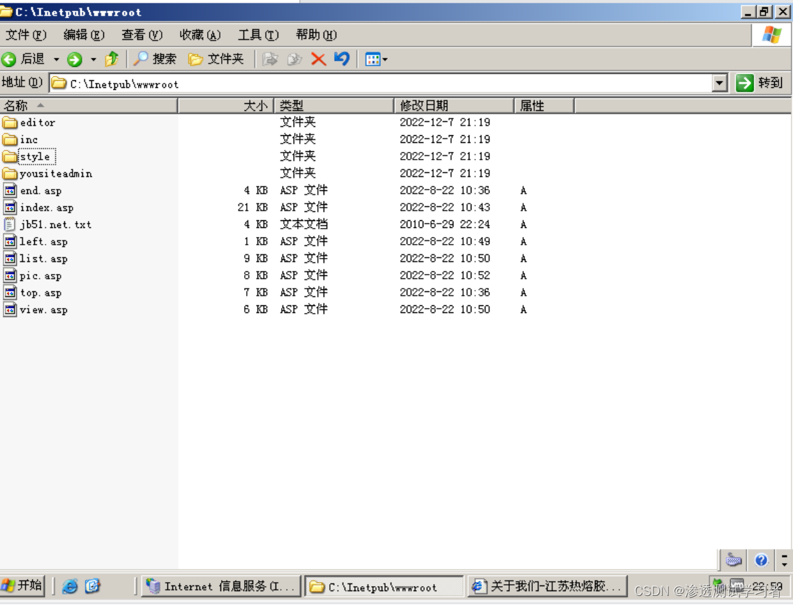 里面的asp文档是自己添加的(只添加了几个),就是要搭建的网站源码(在网上找的,然后复制粘贴到虚拟机)所需的文件。可以看保存路径里的文件有这些东西。