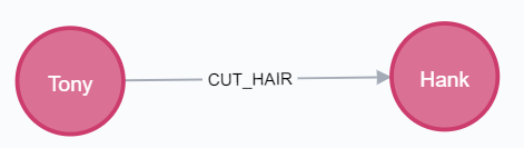 MATCH (tony:User {name: 'Tony'}), (hank:User {name: 'Hank'}) CREATE (tony)-[r:CUT_HAIR]->(hank) return tony, hank