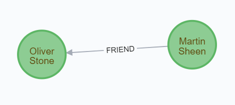 现在需要返回Martin Sheen和Oliver Stone的最短路径,显然二者本身具有FRIEND关系,那么最短路径就是这个关系的路径。
