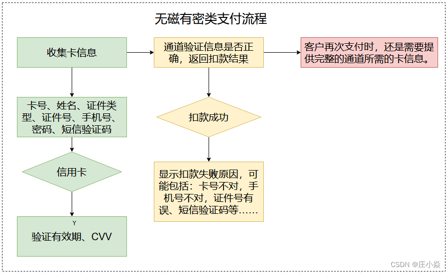 采用无磁有密类进行支付时,可以直接支付,无签约鉴权流程。具体支付流程如下。
