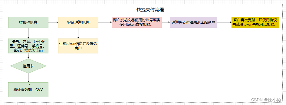 - 签约流程:签约要求先验证卡信息,比如卡号、姓名、证件类型、证件号、手机号、短信验证码等。如果是信用卡,还可能会验证有效期、CVV。