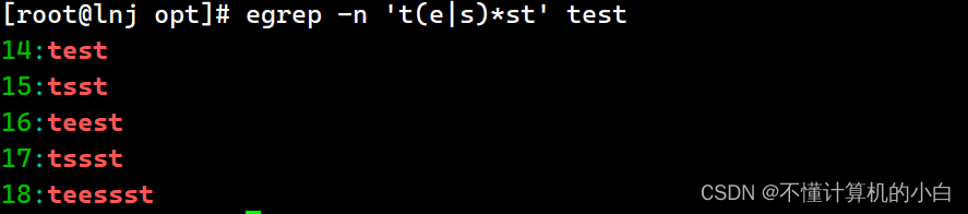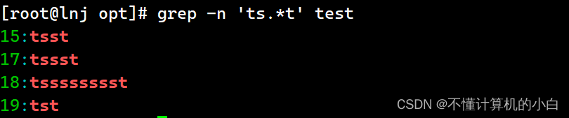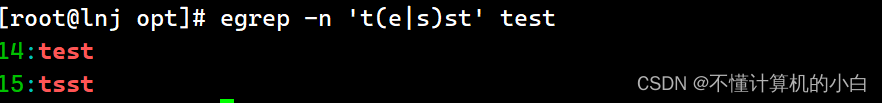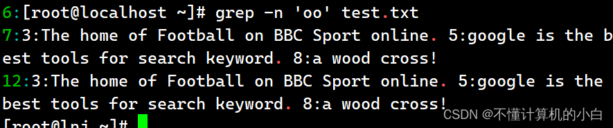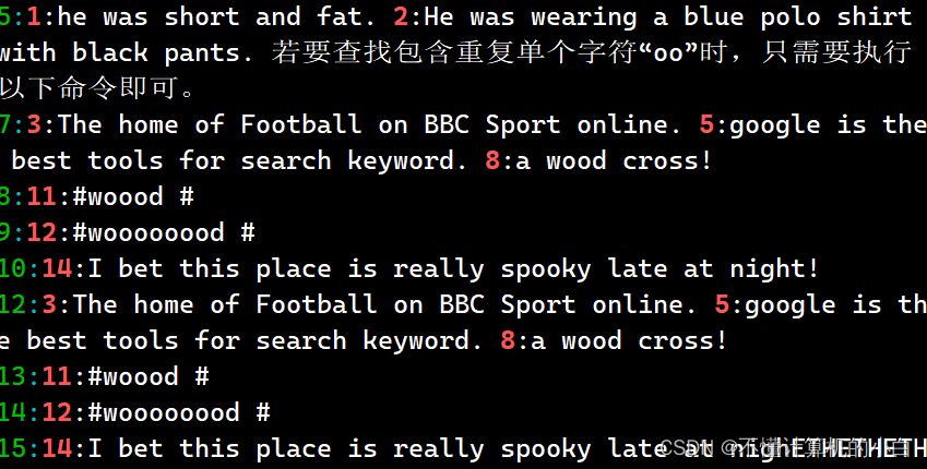 例如在test.txt文件中,多写了一个the,我想单独把the找出来,其中grep中-n表示显示行号,-i是区分大小写