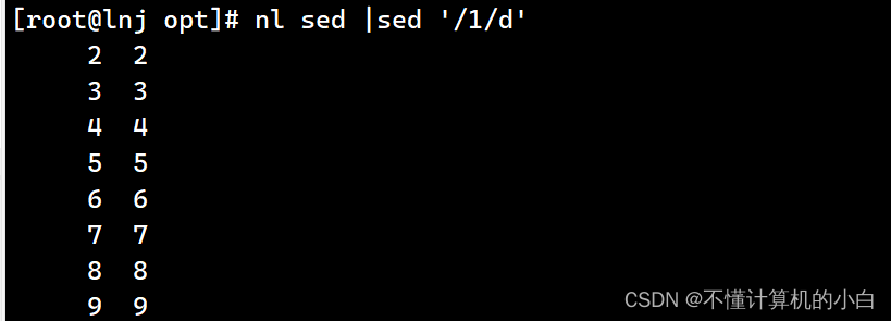 Nl sed |sed’/1/d’删除包含1的行