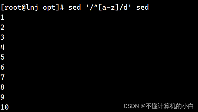 sed '/^[a-z]/d' sed表示删除以英文字母开头的行